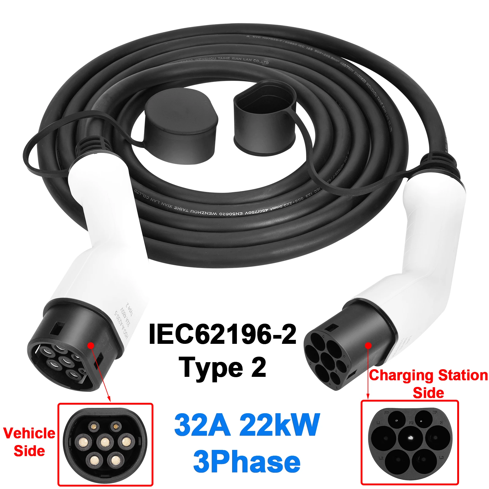 EV Charging Cable 32A 22KW Three Phase Electric Vehicle Cord for Car Charger Station Type 2 EVSE Female to Male Plug IEC 62196